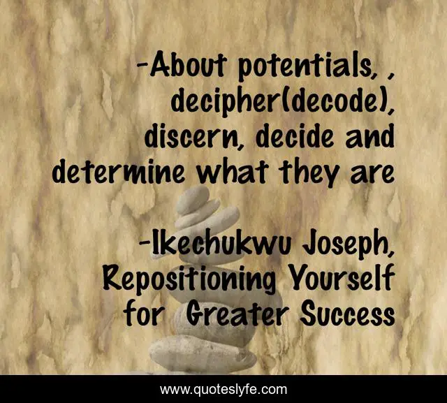 "Ikechukwu Joseph, Repositioning Yourself for Greater Success Quotes." Quoteslyfe.com, 2025. Fri. 05 Dec. 2025. <https://www.quoteslyfe.com/quote/About-potentials-decipher-decode-discern-decide-and-106233>.