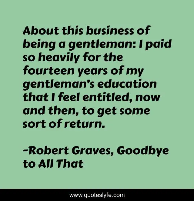"Robert Graves, Goodbye to All That Quotes." Quoteslyfe.com, 2025. Sun. 07 Dec. 2025. <https://www.quoteslyfe.com/quote/About-this-business-of-being-a-gentleman-33577>.