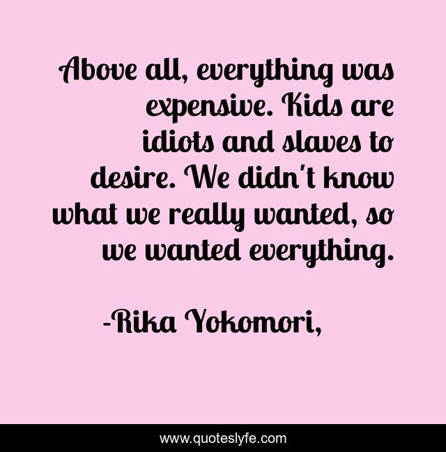 This page presents the quote "Above all, everything was expensive. Kids are idiots and slaves to desire. We didn't know what we really wanted, so we wanted everything.". Author of this quote is Rika Yokomori, تانغو طوكيو. .