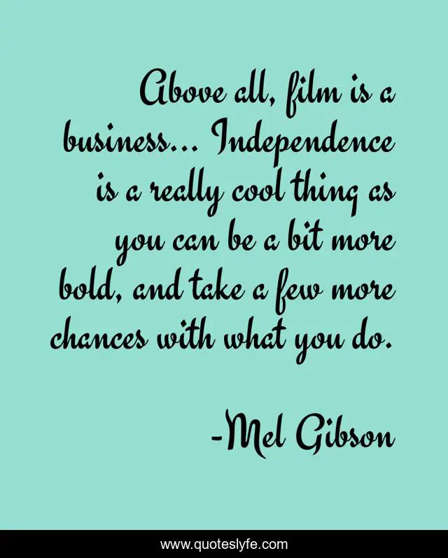 This page presents the quote "Above all, film is a business... Independence is a really cool thing as you can be a bit more bold, and take a few more chances with what you do.". Author of this quote is Mel Gibson. This quote is about bold, business, cool,.