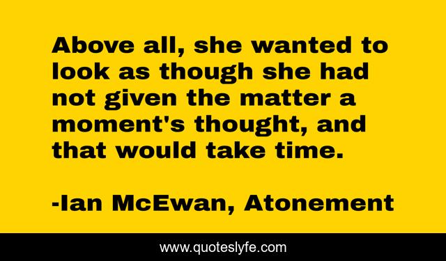 This page presents the quote "Above all, she wanted to look as though she had not given the matter a moment's thought, and that would take time.". Author of this quote is Ian McEwan, Atonement. .