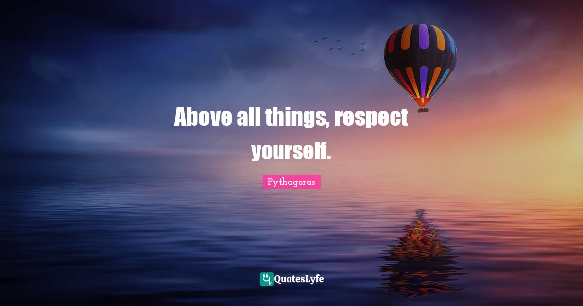 "Pythagoras Quotes." Quoteslyfe.com, 2026. Mon. 12 Jan. 2026. <https://www.quoteslyfe.com/quote/Above-all-things-respect-yourself-965472>.