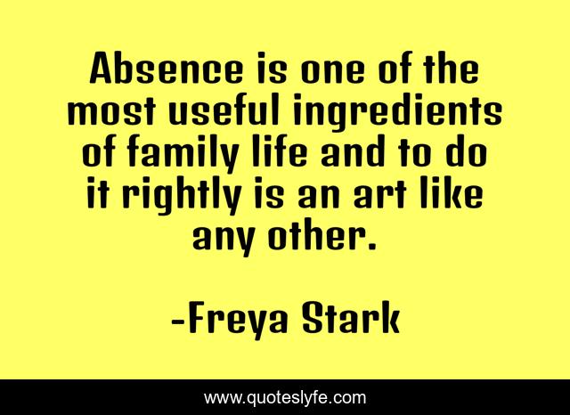 This page presents the quote "Absence is one of the most useful ingredients of family life and to do it rightly is an art like any other.". Author of this quote is Freya Stark. This quote is about ancestry, family,.