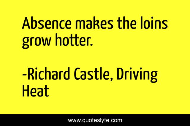 This page presents the quote "Absence makes the loins grow hotter.". Author of this quote is Richard Castle, Driving Heat. This quote is about heart, love, make-out, romance, passion, kiss, kissing, affection,.