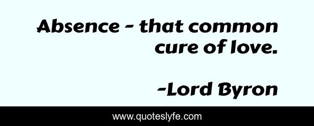 "Lord Byron Quotes." Quoteslyfe.com, 2025. Sun. 07 Dec. 2025. <https://www.quoteslyfe.com/quote/Absence-that-common-cure-of-love-287299>.