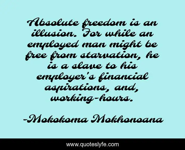 "Mokokoma Mokhonoana Quotes." Quoteslyfe.com, 2025. Sat. 06 Dec. 2025. <https://www.quoteslyfe.com/quote/Absolute-freedom-is-an-illusion-For-while-197948>.