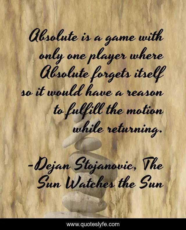 "Dejan Stojanovic, The Sun Watches the Sun Quotes." Quoteslyfe.com, 2025. Sat. 13 Dec. 2025. <https://www.quoteslyfe.com/quote/Absolute-is-a-game-with-only-one-112438>.