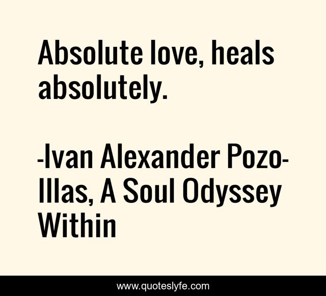 This page presents the quote "Absolute love, heals absolutely.". Author of this quote is Ivan Alexander Pozo-Illas, A Soul Odyssey Within. This quote is about spiritual, wisdom,.