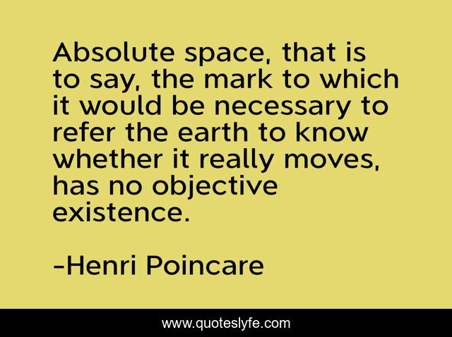 This page presents the quote "Absolute space, that is to say, the mark to which it would be necessary to refer the earth to know whether it really moves, has no objective existence.". Author of this quote is Henri Poincare. This quote is about earth, existence,.