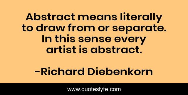 This page presents the quote "Abstract means literally to draw from or separate. In this sense every artist is abstract.". Author of this quote is Richard Diebenkorn. This quote is about abstract, abstraction, art, artist,.