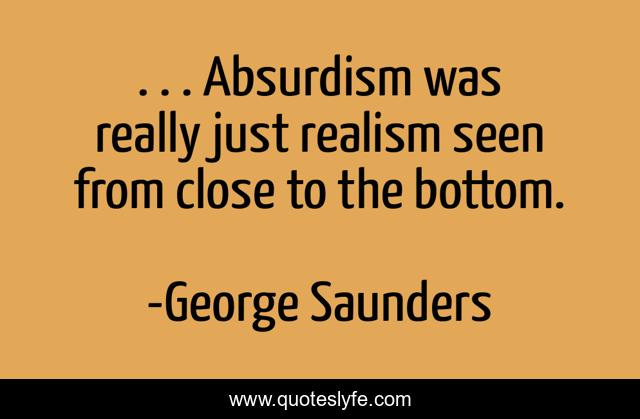 This page presents the quote ". . . Absurdism was really just realism seen from close to the bottom.". Author of this quote is George Saunders. This quote is about literature, absurdism, realism,.