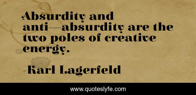 This page presents the quote "Absurdity and anti—absurdity are the two poles of creative energy.". Author of this quote is Karl Lagerfeld. This quote is about style, art, duality, bipolar, create, creativity, bi, karl-lagerfeld, originality,.