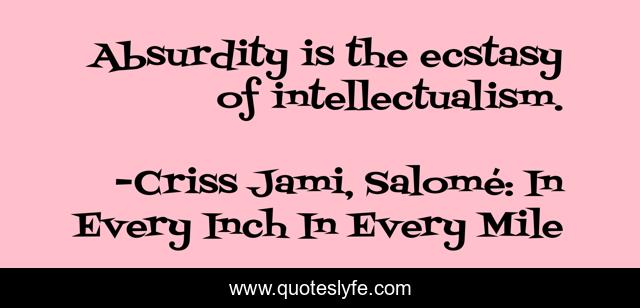 "Criss Jami, Salomé: In Every Inch In Every Mile Quotes." Quoteslyfe.com, 2025. Sat. 06 Dec. 2025. <https://www.quoteslyfe.com/quote/Absurdity-is-the-ecstasy-of-intellectualism-7932>.