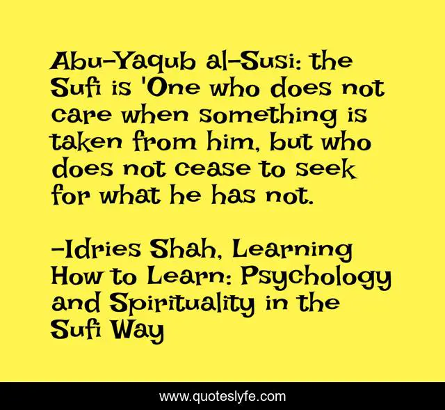 "Idries Shah, Learning How to Learn: Psychology and Spirituality in the Sufi Way Quotes." Quoteslyfe.com, 2025. Sat. 06 Dec. 2025. <https://www.quoteslyfe.com/quote/Abu-Yaqub-al-Susi-the-Sufi-is-203481>.