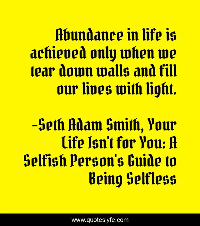 "Seth Adam Smith, Your Life Isn't for You: A Selfish Person's Guide to Being Selfless Quotes." Quoteslyfe.com, 2025. Fri. 05 Dec. 2025. <https://www.quoteslyfe.com/quote/Abundance-in-life-is-achieved-only-when-97465>.