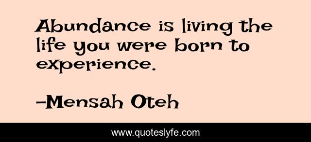 "Mensah Oteh Quotes." Quoteslyfe.com, 2025. Sun. 07 Dec. 2025. <https://www.quoteslyfe.com/quote/Abundance-is-living-the-life-you-were-49246>.