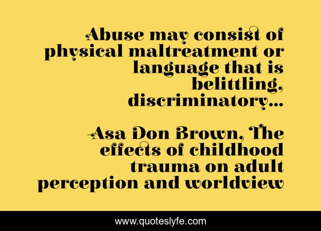 "Asa Don Brown, The effects of childhood trauma on adult perception and worldview Quotes." Quoteslyfe.com, 2025. Fri. 05 Dec. 2025. <https://www.quoteslyfe.com/quote/Abuse-may-consist-of-physical-maltreatment-or-103550>.