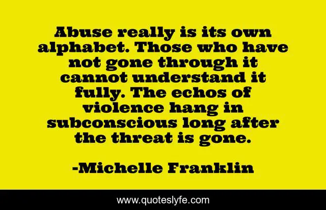 "Michelle Franklin Quotes." Quoteslyfe.com, 2025. Fri. 05 Dec. 2025. <https://www.quoteslyfe.com/quote/Abuse-really-is-its-own-alphabet-Those-147975>.