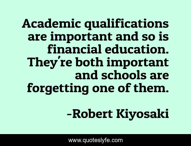 This page presents the quote "Academic qualifications are important and so is financial education. They're both important and schools are forgetting one of them.". Author of this quote is Robert Kiyosaki. This quote is about important, financial,.