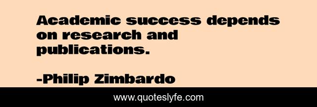 This page presents the quote "Academic success depends on research and publications.". Author of this quote is Philip Zimbardo. This quote is about academic, depends, research,.