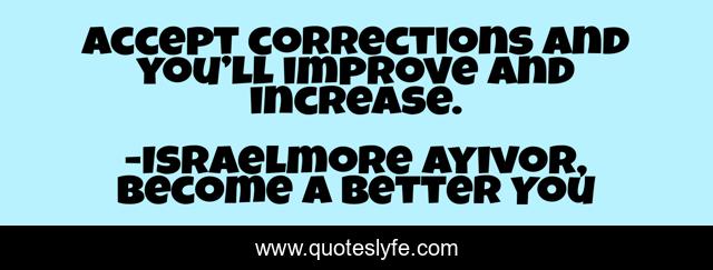 "Israelmore Ayivor, Become a Better You Quotes." Quoteslyfe.com, 2025. Fri. 05 Dec. 2025. <https://www.quoteslyfe.com/quote/Accept-corrections-and-you-ll-improve-and-129154>.