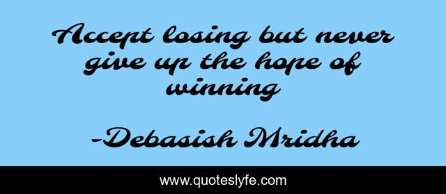 This page presents the quote "Accept losing but never give up the hope of winning". Author of this quote is Debasish Mridha. This quote is about life, love, knowledge, inspirational, intelligence, philosophy, wisdom, quotes, affection,.