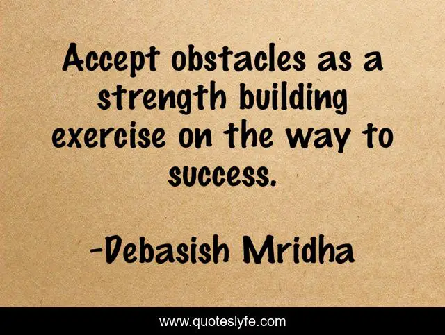 This page presents the quote "Accept obstacles as a strength building exercise on the way to success.". Author of this quote is Debasish Mridha. This quote is about success, obstacles-to-success, philosophy, debasish-mridha, strength-building, quotes, debasish-mridha-md, inspirational, way-to-success,.