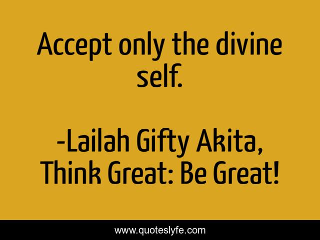 "Lailah Gifty Akita, Think Great: Be Great! Quotes." Quoteslyfe.com, 2025. Fri. 05 Dec. 2025. <https://www.quoteslyfe.com/quote/Accept-only-the-divine-self-91764>.