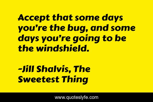 This page presents the quote "Accept that some days you’re the bug, and some days you’re going to be the windshield.". Author of this quote is Jill Shalvis, The Sweetest Thing. .