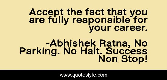 This page presents the quote "Accept the fact that you are fully responsible for your career.". Author of this quote is Abhishek Ratna, No Parking. No Halt. Success Non Stop!. This quote is about success, career-advice, career, success-self-improvement, career-development, success-strategies, responsibility, success-in-business, career-counseling,.