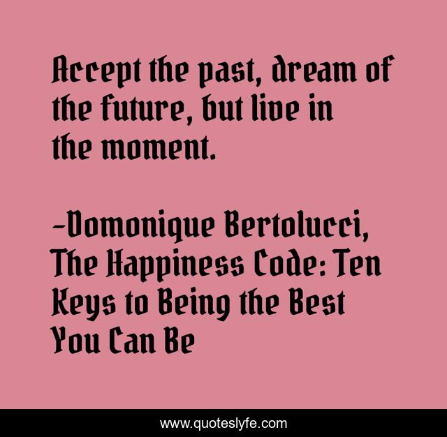 "Domonique Bertolucci, The Happiness Code: Ten Keys to Being the Best You Can Be Quotes." Quoteslyfe.com, 2025. Mon. 08 Dec. 2025. <https://www.quoteslyfe.com/quote/Accept-the-past-dream-of-the-future-215344>.