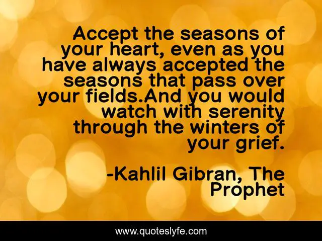 "Kahlil Gibran, The Prophet Quotes." Quoteslyfe.com, 2025. Tue. 09 Dec. 2025. <https://www.quoteslyfe.com/quote/Accept-the-seasons-of-your-heart-even-97330>.
