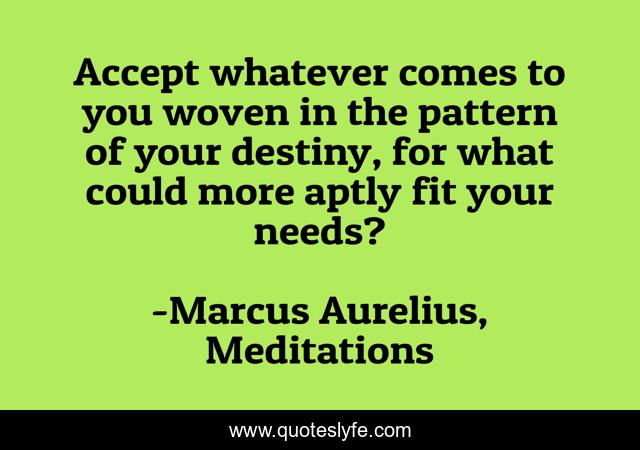 "Marcus Aurelius, Meditations Quotes." Quoteslyfe.com, 2025. Tue. 09 Dec. 2025. <https://www.quoteslyfe.com/quote/Accept-whatever-comes-to-you-woven-in-4887>.