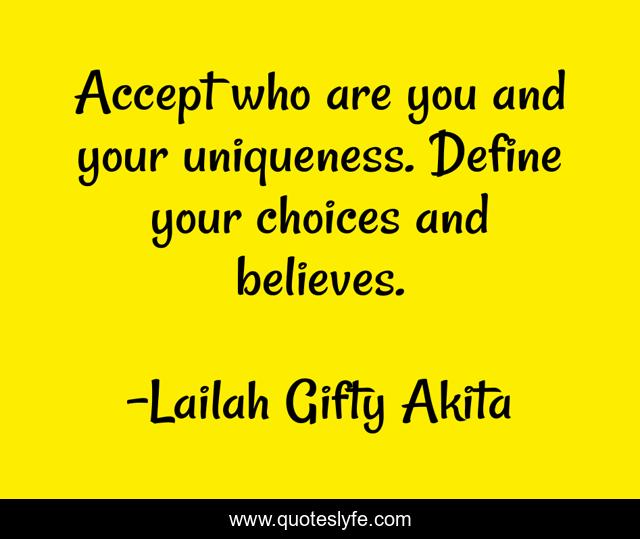 "Lailah Gifty Akita Quotes." Quoteslyfe.com, 2025. Fri. 05 Dec. 2025. <https://www.quoteslyfe.com/quote/Accept-who-are-you-and-your-uniqueness-174891>.