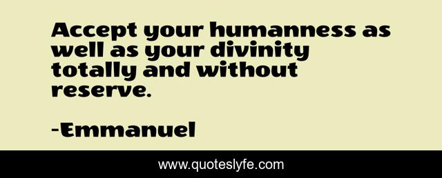 This page presents the quote "Accept your humanness as well as your divinity totally and without reserve.". Author of this quote is Emmanuel. This quote is about self, acceptance,.