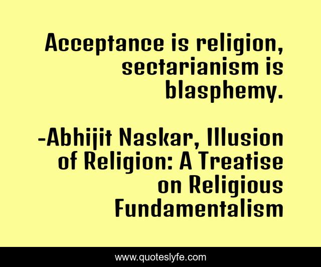 "Abhijit Naskar, Illusion of Religion: A Treatise on Religious Fundamentalism Quotes." Quoteslyfe.com, 2025. Mon. 08 Dec. 2025. <https://www.quoteslyfe.com/quote/Acceptance-is-religion-sectarianism-is-blasphemy-36583>.