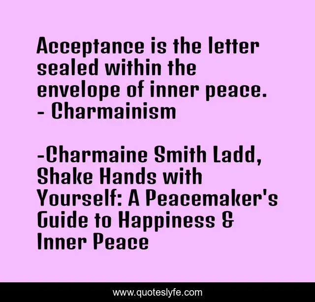 "Charmaine Smith Ladd, Shake Hands with Yourself: A Peacemaker's Guide to Happiness & Inner Peace Quotes." Quoteslyfe.com, 2025. Mon. 08 Dec. 2025. <https://www.quoteslyfe.com/quote/Acceptance-is-the-letter-sealed-within-the-186726>.
