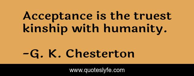 This page presents the quote "Acceptance is the truest kinship with humanity.". Author of this quote is G. K. Chesterton. .