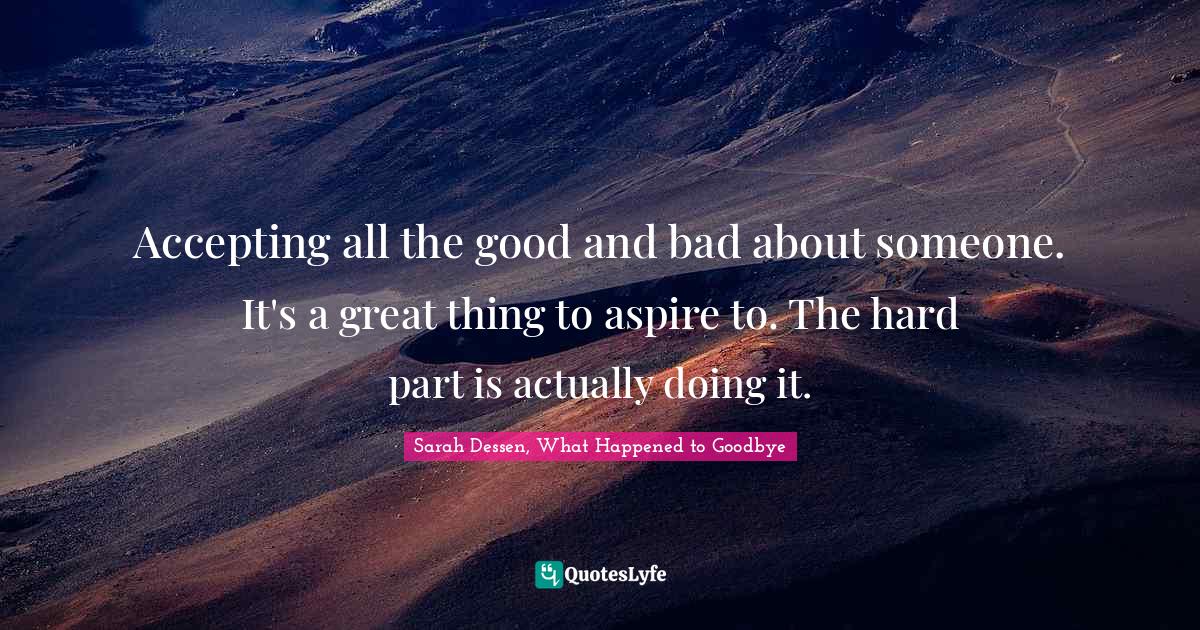 "Sarah Dessen, What Happened to Goodbye Quotes." Quoteslyfe.com, 2026. Thu. 19 Mar. 2026. <https://www.quoteslyfe.com/quote/Accepting-all-the-good-and-bad-about-186564>.