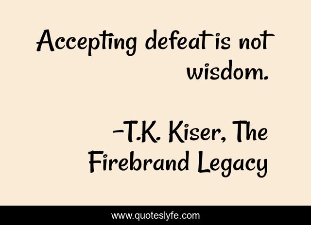 "T.K. Kiser, The Firebrand Legacy Quotes." Quoteslyfe.com, 2025. Fri. 05 Dec. 2025. <https://www.quoteslyfe.com/quote/Accepting-defeat-is-not-wisdom-186668>.