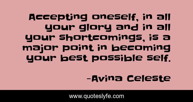 This page presents the quote "Accepting oneself, in all your glory and in all your shortcomings, is a major point in becoming your best possible self.". Author of this quote is Avina Celeste. This quote is about self-acceptance, self-development,.