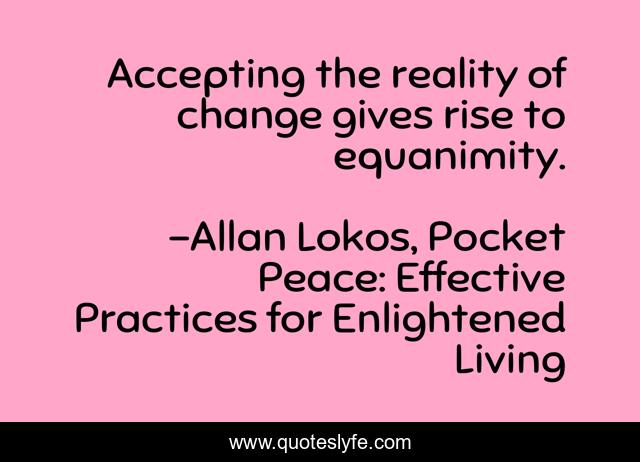 "Allan Lokos, Pocket Peace: Effective Practices for Enlightened Living Quotes." Quoteslyfe.com, 2025. Sat. 06 Dec. 2025. <https://www.quoteslyfe.com/quote/Accepting-the-reality-of-change-gives-rise-30714>.