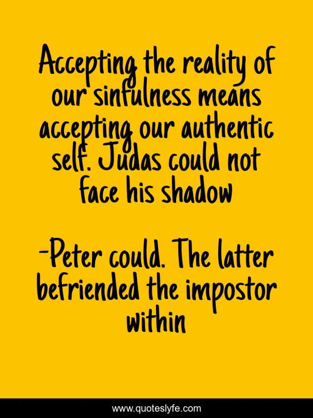 This page presents the quote "Accepting the reality of our sinfulness means accepting our authentic self. Judas could not face his shadow". Author of this quote is Peter could. The latter befriended the impostor within. .