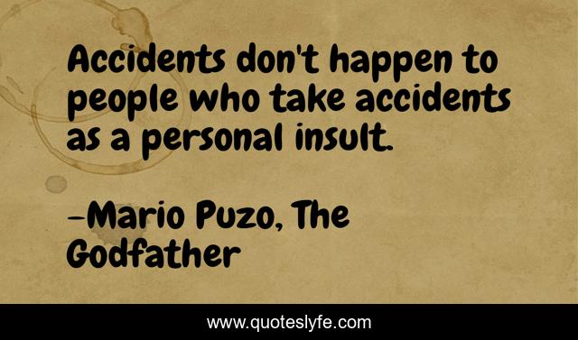 This page presents the quote "Accidents don't happen to people who take accidents as a personal insult.". Author of this quote is Mario Puzo, The Godfather. .