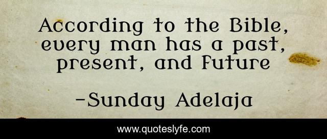 This page presents the quote "According to the Bible, every man has a past, present, and future". Author of this quote is Sunday Adelaja. This quote is about bible, calling, past, future, fulfillment, man, present, purpose,.