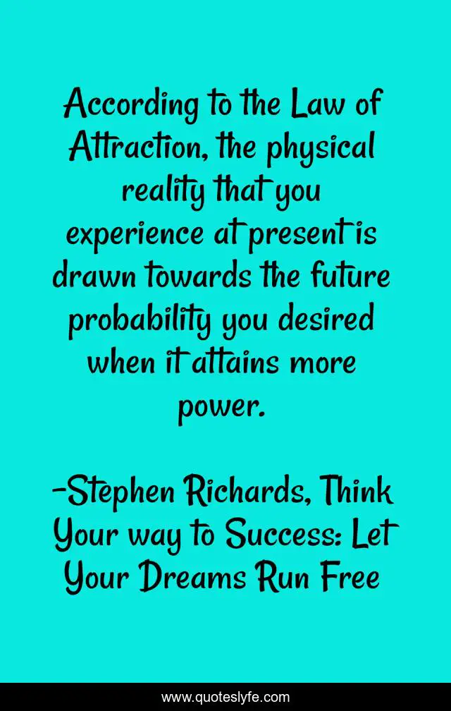 "Stephen Richards, Think Your way to Success: Let Your Dreams Run Free Quotes." Quoteslyfe.com, 2025. Mon. 08 Dec. 2025. <https://www.quoteslyfe.com/quote/According-to-the-Law-of-Attraction-the-36110>.