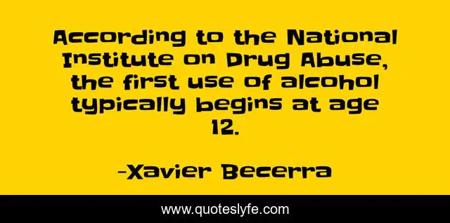 This page presents the quote "According to the National Institute on Drug Abuse, the first use of alcohol typically begins at age 12.". Author of this quote is Xavier Becerra. This quote is about abuse, alcohol, first,.