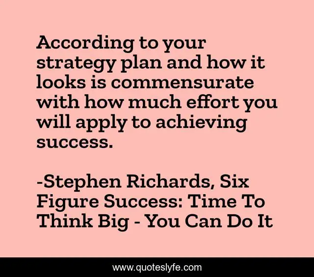 "Stephen Richards, Six Figure Success: Time To Think Big - You Can Do It Quotes." Quoteslyfe.com, 2025. Mon. 08 Dec. 2025. <https://www.quoteslyfe.com/quote/According-to-your-strategy-plan-and-how-78126>.