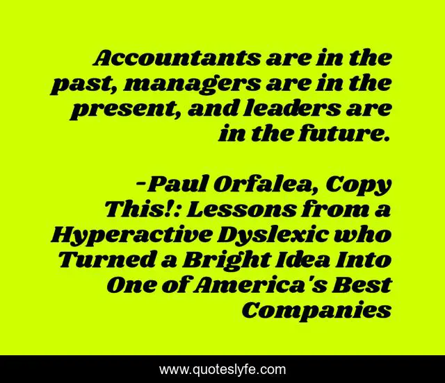 "Paul Orfalea, Copy This!: Lessons from a Hyperactive Dyslexic who Turned a Bright Idea Into One of America's Best Companies Quotes." Quoteslyfe.com, 2025. Fri. 05 Dec. 2025. <https://www.quoteslyfe.com/quote/Accountants-are-in-the-past-managers-are-63979>.