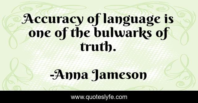 This page presents the quote "Accuracy of language is one of the bulwarks of truth.". Author of this quote is Anna Jameson. This quote is about language, accuracy,.